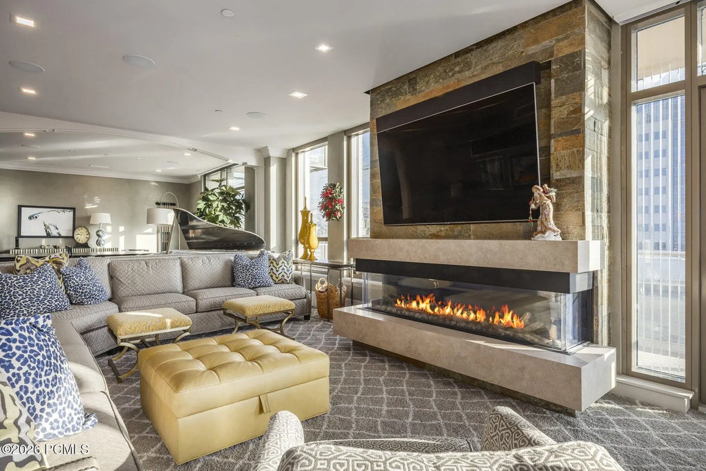 This south- and east-facing 2,814-square-foot, fully furnished, turn-key residence seamlessly combines two units into one luxurious home. Completed in 2020, it showcases the highest-quality materials and impeccable craftsmanship, with every detail thoughtfully designed. The exquisite primary suite is complemented by two additional guest suites, all offering expansive mountain and city views. The home also features a den, hearth room, and a dedicated game or pool-table room. An oversized fireplace anchors the main living area, creating a striking focal point for gatherings. Two private patios provide unobstructed views of Temple Square, the mountains, and City Creek. The residence includes two prime parking spaces and two side-by-side storage units. (Some furniture exclusions apply.) HOA Amenities include: Fitness, Clubhouse, Olympic sized indoor Pool, Sundeck, access to The Commons - an exclusive executive suite for up to 150 guests. Downtown Salt Lake City offers a vibrant, walkable lifestyle that blends historic character with modern urban living. Residents enjoy premier shopping and dining at City Creek Center, an expanding culinary scene, and convenient access to cultural attractions. The area provides easy connectivity to the University of Utah, professional sports venues for those seeking an active lifestyle.